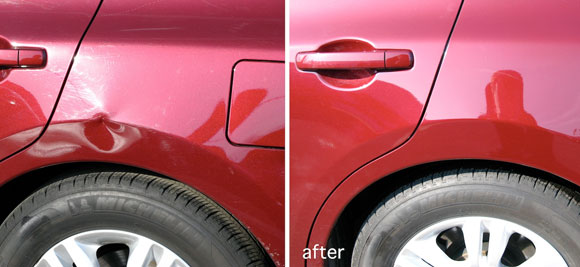 Our highly skilled technicians use specialized tools to push or “massage” dents from the interior sides of doors and panels. Because we don’t use any grinding, painting, or putty, your vehicle maintains its original factory finish. Our process is usually much less expensive than a conventional body shop repair/repaint. Door dings usually take about 45 minutes. Larger and more complex dents can take 2-4 hours.